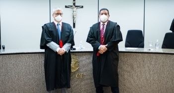 Os desembargadores Inacio de Alencar Cortez Neto e Raimundo Nonato Silva Santos tomaram posse na manhã desta sexta-feira, 4/6, nos cargos de presidente e vice-presidente e corregedor do Tribunal Regional Eleitoral do Ceará, respectivamente, para o biênio 2021-2023. Pela primeira vez na história e por imposição da pandemia de covid-19, O evento contou com a presença remota de autoridades dos Poderes Executivo, Legislativo e Judiciário, de familiares e de amigas e amigos dos empossados.