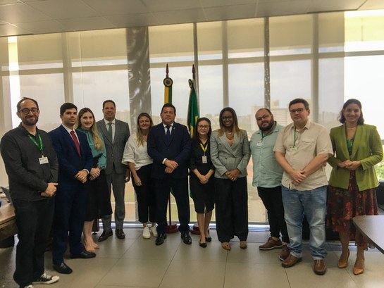 Registro fotográfico feito na sala da presidência do TRE-CE. Estão presentes, ao todo, 11 pessoas, sendo, 6 homens e 5 mulheres.