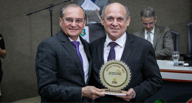 O Tribunal Regional Eleitoral do Ceará (TRE-CE), representado pelo desembargador Gladyson Pontes, foi uma das instituições agraciadas pelo Tribunal de Justiça do Estado do Ceará (TJCE) com o "Selo Empresa Parceira - De Mãos Dadas pela Paz em Casa". O recebimento do selo ocorreu nessa quarta-feira, 22/3, no Fórum Beviláqua, em Fortaleza. O objetivo é reconhecer o trabalho desenvolvido por instituições públicas e privadas que promoveram políticas e ações de enfrentamento à violência contra a mulher ao longo de 2022.
