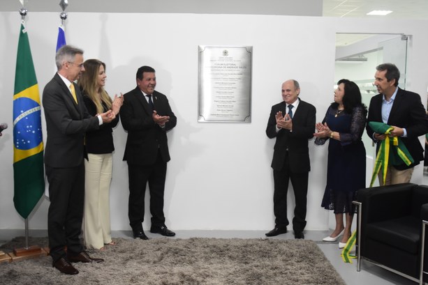 Segundo o presidente, entre os motivos de celebração da conquista, estão: “proporcionar bem-estar e qualidade no ambiente de trabalho; evoluir para um atendimento mais digno aos cidadãos e reconhecer, com toda a honra que se merece, a admiração e a gratidão aos nossos servidores obstinados e dedicados no ‘fazer’ democrático”. Após a fala, o desembargador, ao lado de demais autoridades e do filho da homenageada, descerrou a placa do Fórum.