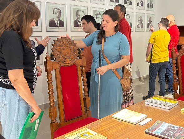 Durante o momento do acolhimento, as pessoas realizaram uma visita guiada ao Centro de Memória Eleitoral. Na ocasião, o chefe da Seção de Memória Eleitoral e Biblioteca, Yuri Holanda Cruz, discorreu sobre o contexto histórico da Justiça Eleitoral cearense e tirou dúvidas dos convidados.