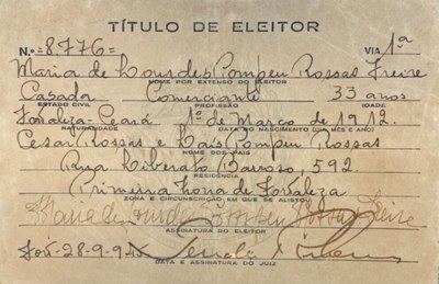 Título eleitoral de 1945, após a reinstalação da Justiça Eleitoral