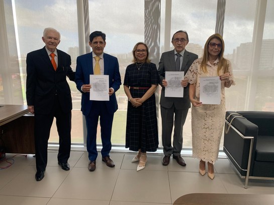 Em solenidade realizada nessa terça-feira, 10 de junho, a Presidência do Tribunal Regional Eleitoral do Ceará (TRE-CE) empossou dois novos membros da Corte, na categoria de suplentes, e a nova juíza ouvidora da Mulher. São eles, respectivamente, o desembargador Luís Evaldo Gonçalves Leite, do Tribunal de Justiça do Estado; o juiz federal Francisco Luís Rios Alves e a juíza Valéria Carneiro Sousa dos Santos.