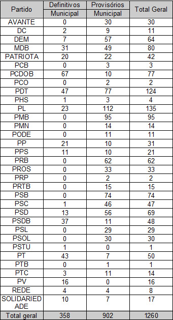 Gráfico Comissões Provisórias 26-06-2019 - Tabela Órgãos Municipais